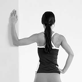 2. Hold on to an immovable object and then turn your shoulders and body away from your outstretched arm.