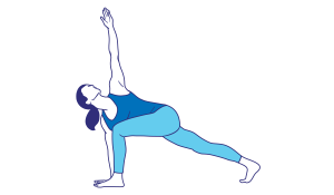 - Place your right hand on the floor and twist your upper body to the left as you extend your left arm toward the ceiling.